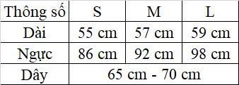 * Lưu ý: Thông số chưa bao gồm độ co giãn của sản phẩm.